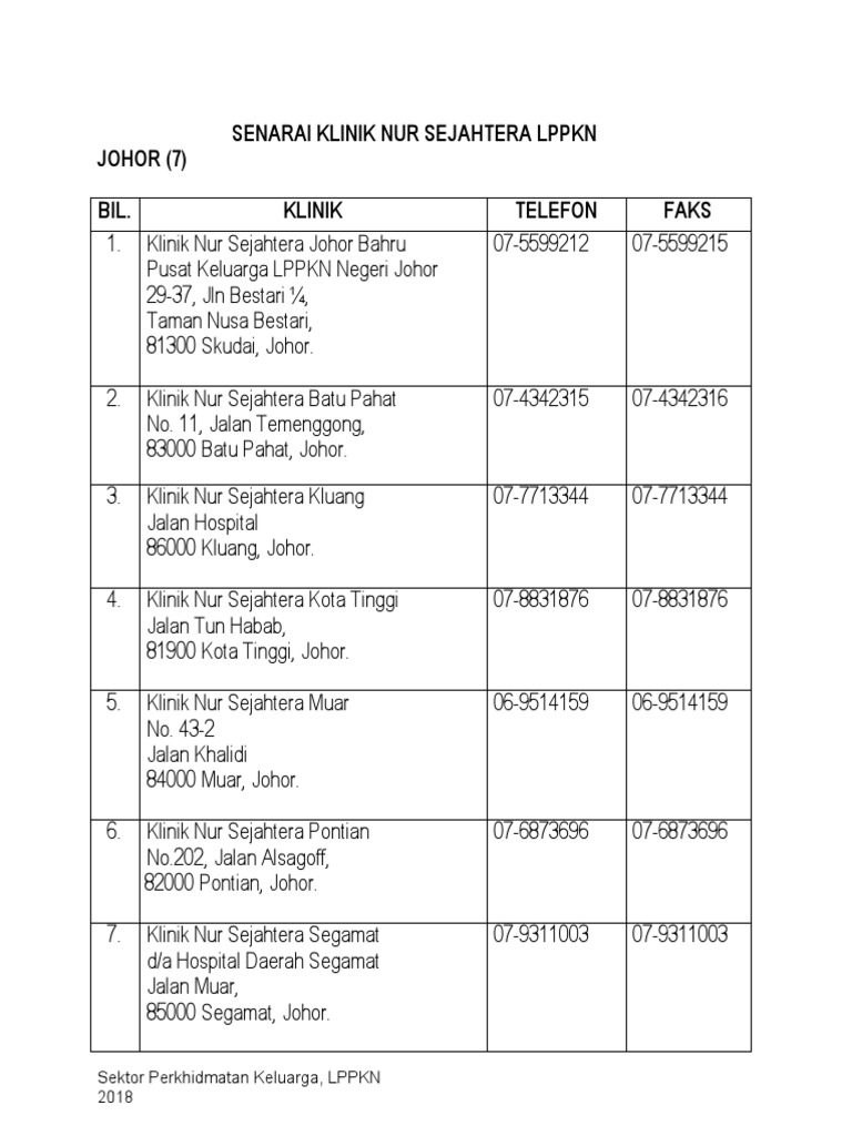 Klinik nur is a qualified clinic under malaysia government's program of socso health screening programme (hsp), if you are qualified for that program, you can get your free health. Klinik nur sejahtera batu pahat, no. Kpj batu pahat specialist hospital. 1, jalan peserai, 83000 batu pahat johor. Senarai klinik nur sejahtera dan klinik subfertiliti lppkn.