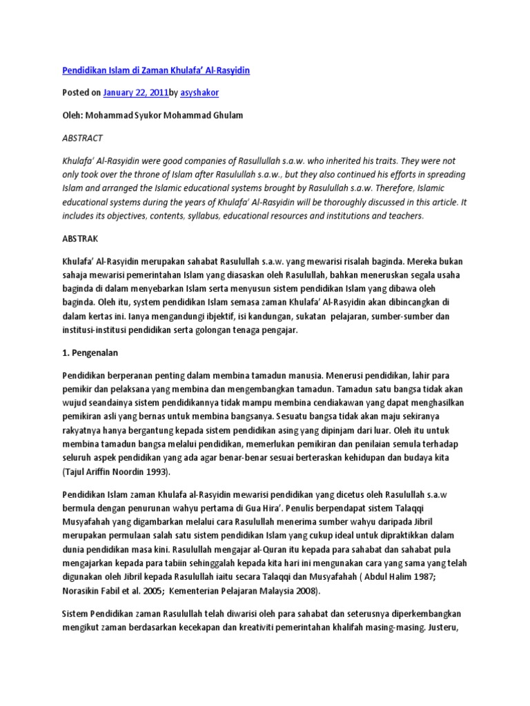 Zaman khulafa alrasyidin nur syahirah bin. Pengurusan negara islam yang sistematik. Temuduga lantikan dalam percubaan pengesahan jawatan. Pemerintahan pusat dan wilayah semasa zaman khalifah ar rasyidin tahun 632m hingga 661m. Tempat kanak kanak belajar menulis, mengira, membaca dan menghafaz al quran.