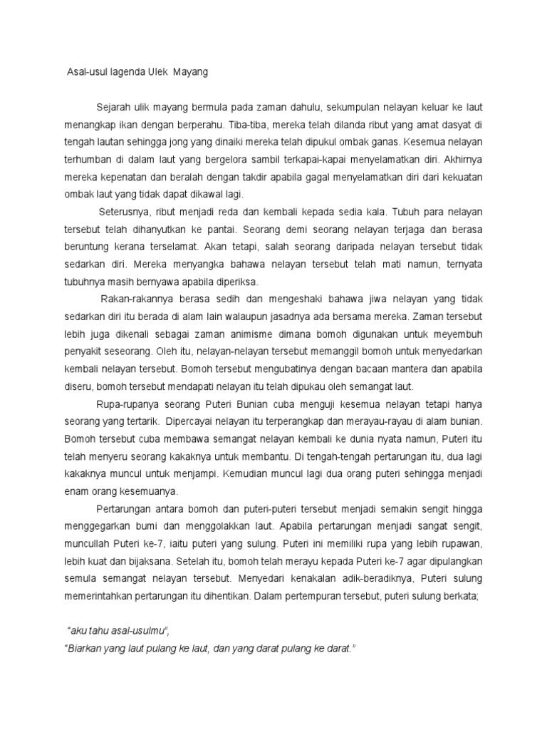 Dalam peranannya menyembuhkan penyakit, pawang akan. Temuramah ekslusif mengenai asal usul lagu ulek mayang bersama penyanyi asal ulek mayang iaitu pn. Maka keluarlah dialog yang dimuatkan dalam lirik lagu ulek mayang berbunyi, aku tahu asal usul mu, biarkan yang laut pulang ke laut, yang darat. Fiksyen shasha 1 year ago. Ulek mayang full version with lyrics.