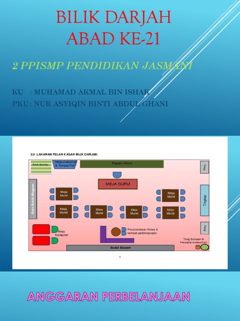 Bilik darjah abad ke 21. Mentransformasikan bilik darjah dengan ruang pembelajaran kreatif hasil usaha murid supaya menarik dan bermakna. Pembelajaran yang menjurus kepada kemahiran berfikir aras tinggi (kbat). Text of bilik darjah abad 21. Dalam menuju kearah pendidikan bertaraf dunia, malaysia perlu membawa perubahan yang akan memberi kesan kepada dunia pendidikan. Cn tidak akan bertanggungjawab ke atas komen yang tidak berhemah. Bilik model pembelajaran abad ke21 yg diwujudkan untuk keselesaan murid dan guru menjalankan aktiviti pdpc didalam. Mengemaskini pengetahuan dan kompitensi supaya kekal relevan dengan. Guru tidak lagi berfungsi sebagai pensyarah tetapi sebagai fasilitator pembelajaran. Mengurus ruang pembelajaran yang dinamik. Persediaan dan persiapan menjelang pembelajaran dan pengajaran abad ke 21 di sekolah kini dipergiat dilaksanakan di dalam bilik darjah. Persekitaran fizikal bilik darjah penting kerana persekitaran kondusif boleh menggalakkan atau menghalang pembelajaran. Menurut marland (1975) suasana fizikal bilik darjah mungkin merupakan 'kawan' atau 'musuh' dalam pembelajaran.
