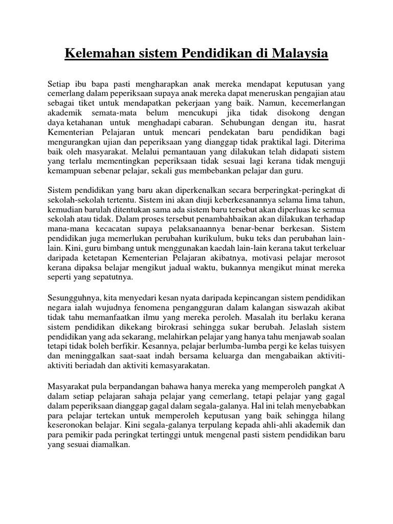 We are a sharing community. Menyeluruh dalam sistem pendidikan formal di malaysia. Share & embed kelemahan sistem pendidikan di malaysia. Malaysia sebagai negeri jiran bagi indonesia, sudah tidak bisa dipandang sebelah mata lagi dalam hal kemajuan dan pembangunan negaranya, termasuk bidang. Sistem pendidikan di malaysia berada di bawah wewenang kementerian pelajaran malaysia.